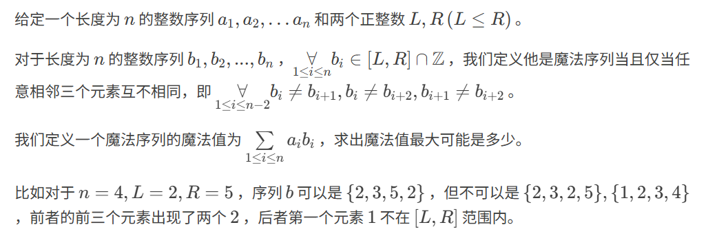 输出一行一个整数表示魔法值的最大值,特殊的,如果不存在任何符合要求的魔法序列 b ,输出 0 。